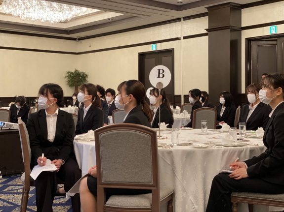 ホスピタリティ研修では、お客様へのおもてなしの心についての考え方、食に携わる仕事を通して大切な時間を彩れることなどを学びました。ホテル・ウエディング業界への就職を目指す学生にとって、将来がイメージできる貴重なお話を聞くことができました。