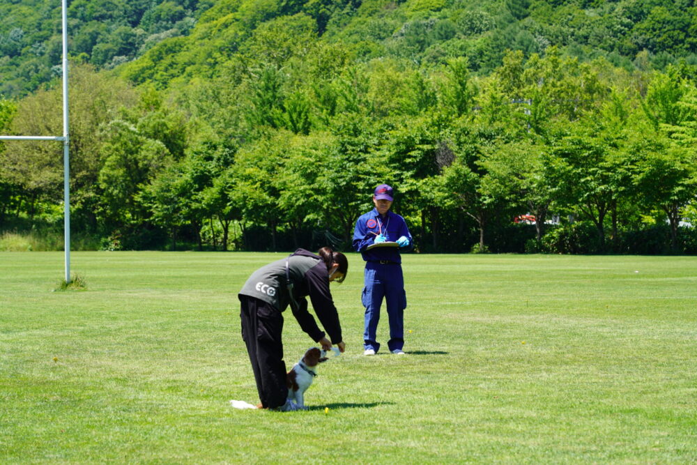 そして試験当日。慣れない場所で他の犬や警察官の存在に、学生も犬も緊張している様子が見受けられました。練習通りにできたチームもあれば、思うようにいかなかったチームもあり、改めて試験の難しさを実感しました。それでも試験を終えた学生たちはどこか誇らしげで、達成感に満ちた表情をしていました。