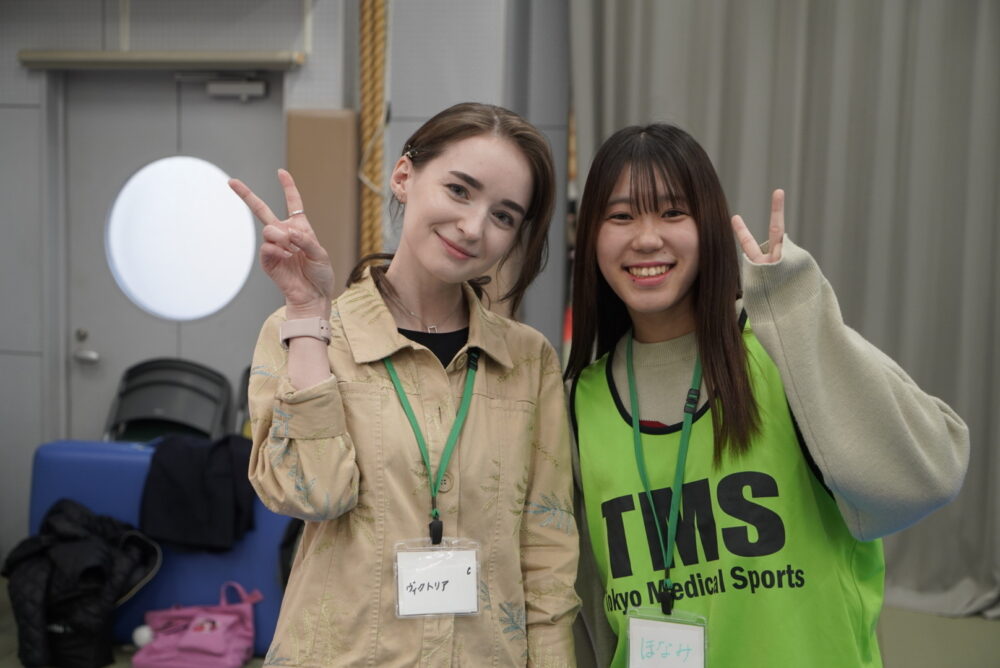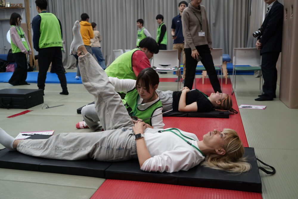 授業は、評価内容の説明から計測、トレーニングのサポートまで、東京メディカル・スポーツ専門学校の学生が英語やジェスチャーを用いてコミュニケーションを取りながら進めました。身体機能チェックでは、普段の授業で身につけた専門的な技術を、どのように分かりやすく伝えるかが問われました。検査やトレーニング方法を丁寧に説明する必要があり、英語力に加えて、表現力やコミュニケーション能力が総合的に求められる授業となりました。