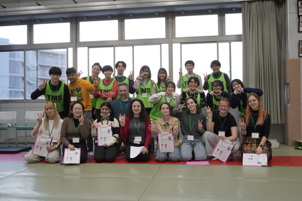 言語の壁がある中でも、身体を一緒に動かすことで自然と会話が生まれ、双方に笑顔が見られる場面が何度も見られました。ボディランゲージを交えた交流を通して、学生の学習効果が一層高まる結果となりました。