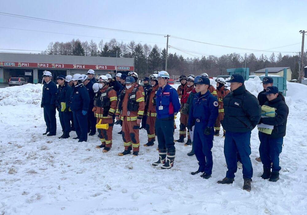 当日は、国道上での多重事故や吹きだまりによる車両の立ち往生、積雪約80センチの中での埋没傷病者の救助など、実際の災害現場を想定した状況が再現されました。警察による交通規制と現場統制、消防による車両破壊を伴う救助活動、救急隊によるトリアージや搬送判断が行われるなど、各機関が緊密に連携して対応する高度な訓練が展開されました。