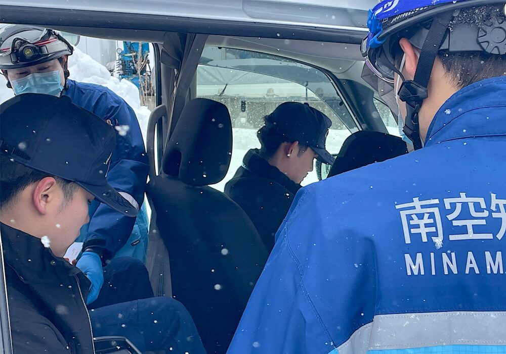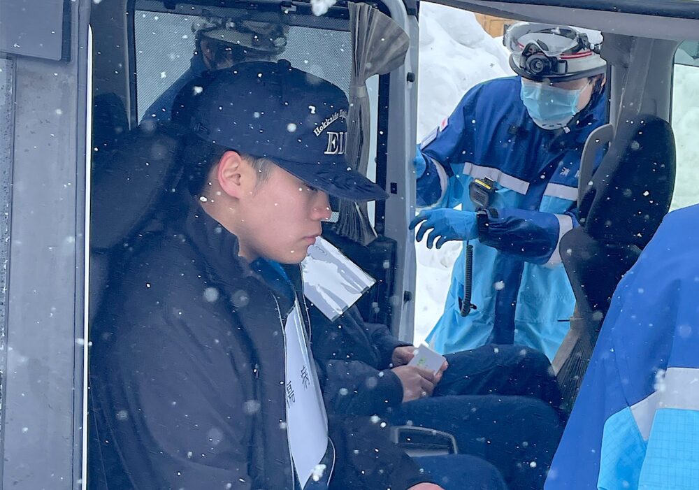 北海道夕張郡栗山町の南空知消防組合消防署からの正式依頼を受け、警察・消防・北海道開発局による三機関合同の「雪害対応訓練」に、北海道ハイテクノロジー専門学校 救急救命士学科の学生5名が模擬傷病者役として参加しました。本訓練は、冬季に発生する大規模な雪害への対応力向上と、関係機関の連携強化を目的とした実践的な取り組みです。