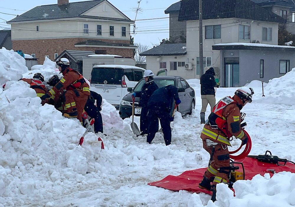 積雪による埋没傷病者の救助訓練の様子