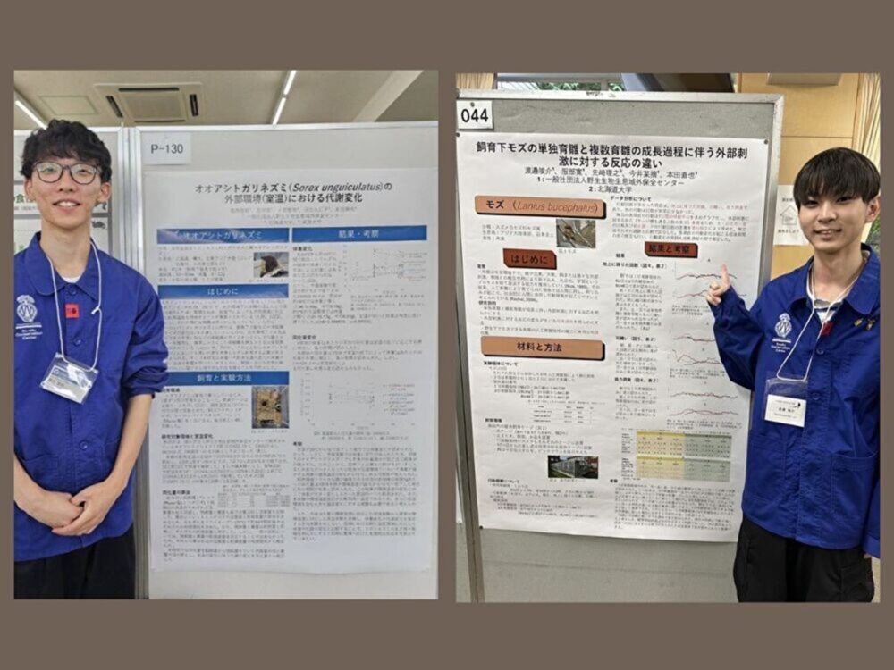 北海道エコ・動物自然専門学校の動物医療飼育学科 希少生物保全コースの4年生2名がこの度、日本哺乳類学会と日本鳥学会で研究発表を行いました。同コースの3・4年生は、連携している一般社団法人 野生生物生息域外保全センターの学生研究員として活動しています。このセンターは、フィールド調査だけでは得られない絶滅の恐れのある生物のデータを飼育下で収集し、その知見を保全活動に活かすことを目的とした施設で、学生は実践的に保全について学ぶ機会を得ています。今回の発表は、こうした取り組みの成果として実現しました。